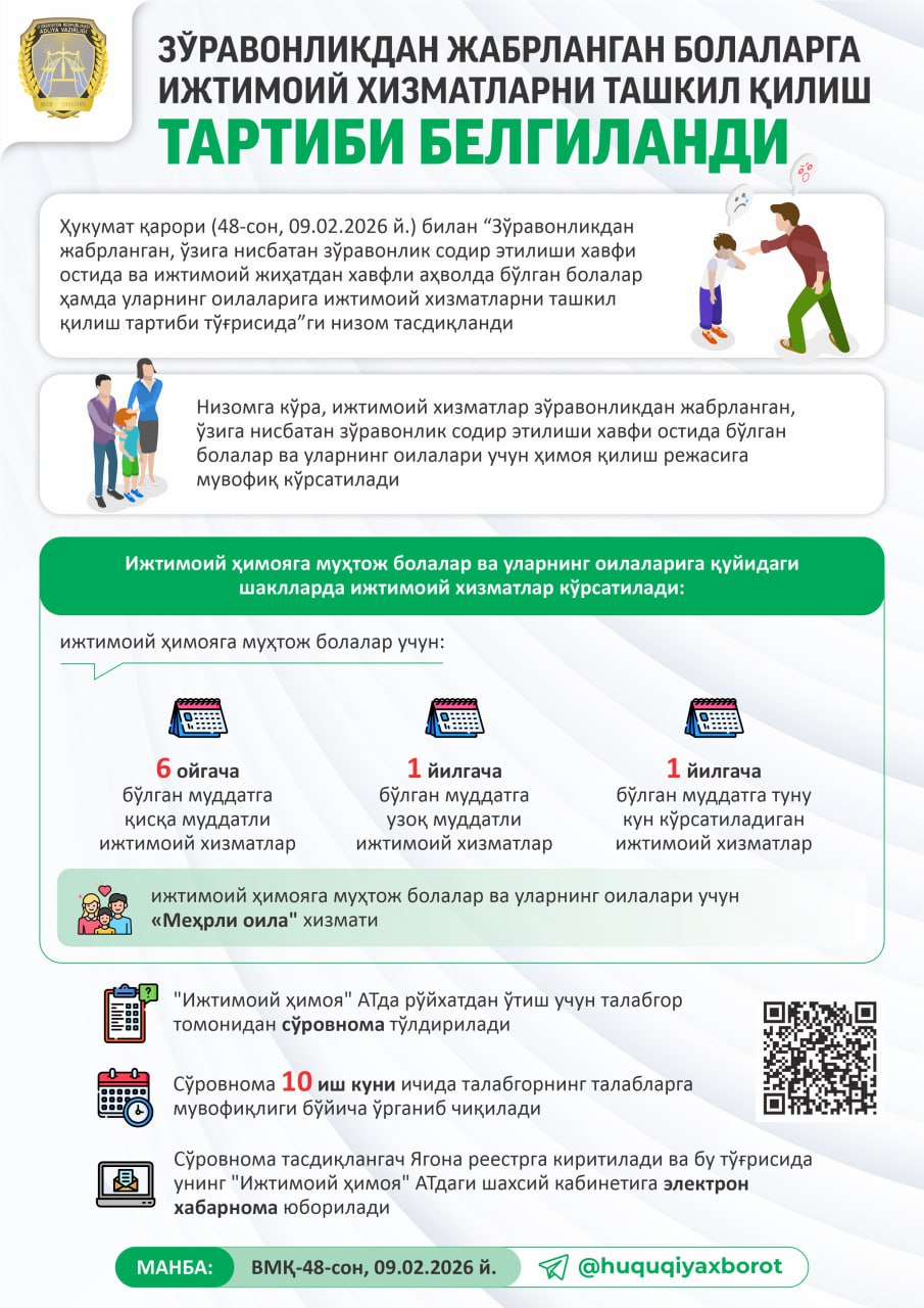 Zo'ravonlikdan jabrlangan bolalarga ijtimoiy xizmatlarni tashkil qilish tartibi