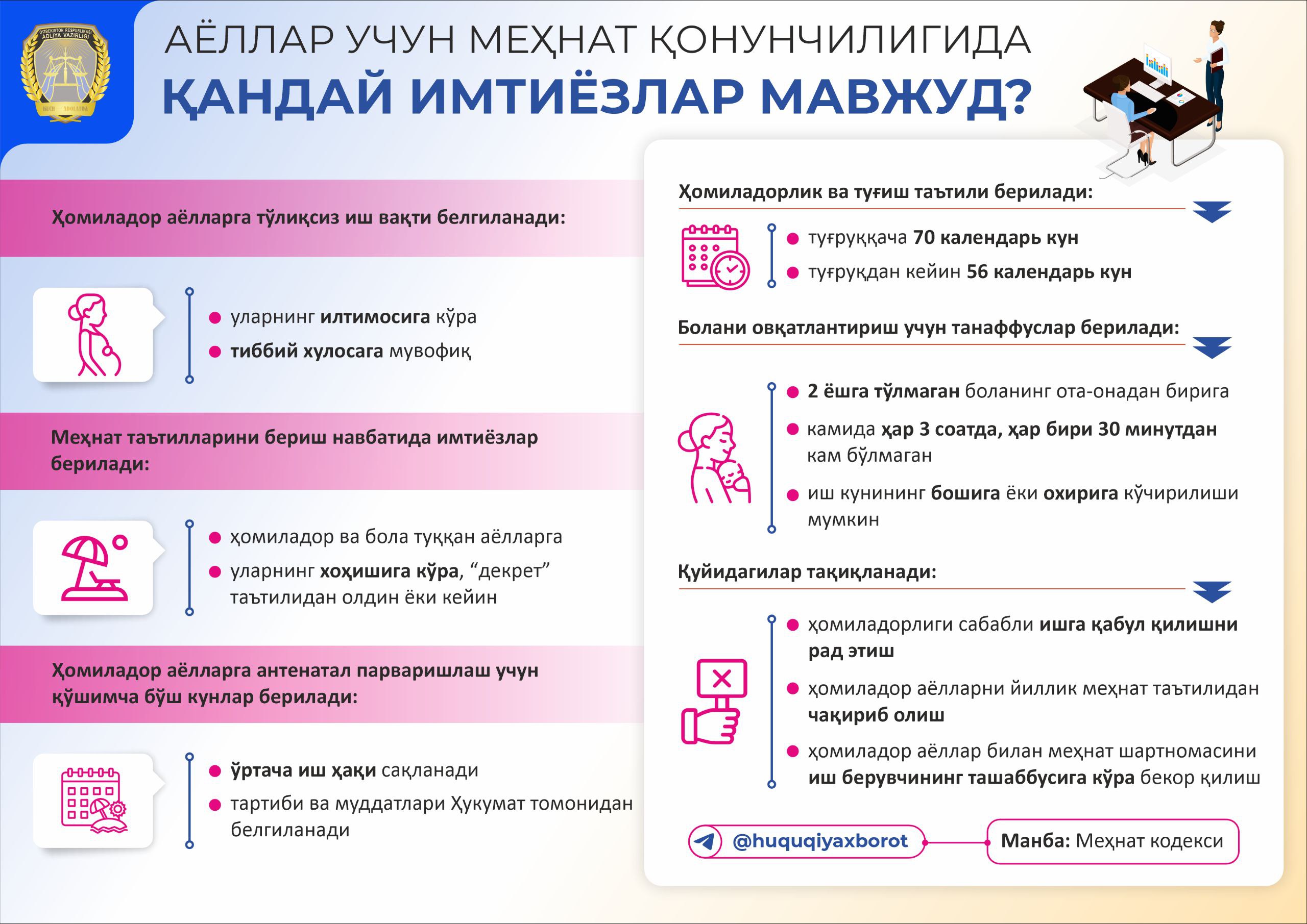 Bolali ayollarga qonunchilikdagi imtiyozlar