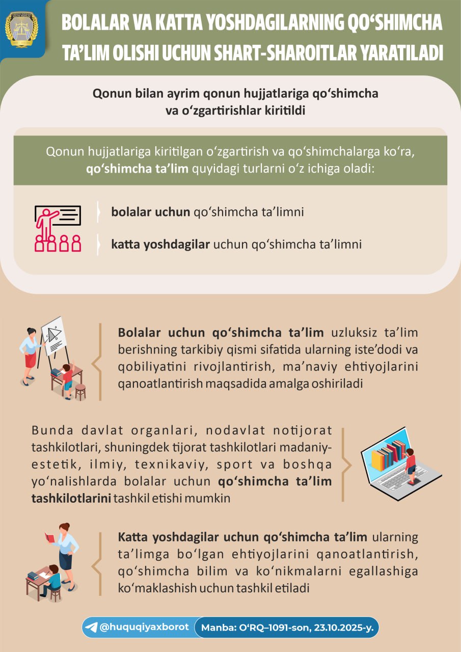 Bolalarning qo'shimcha ta'lim olishi uchun sharoitlar yaratiladi