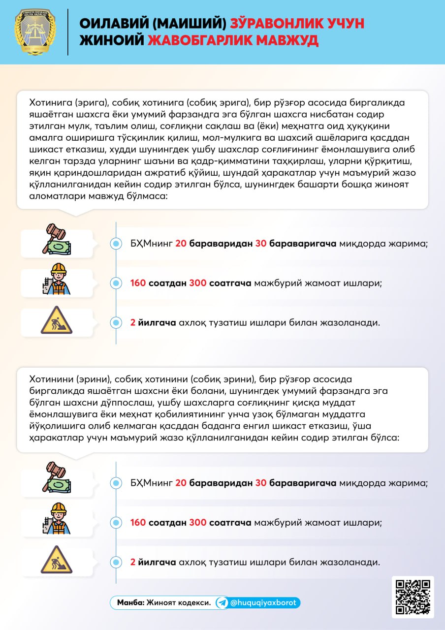 Oilaviy zo'ravonlik uchun javobgarlik mavjud