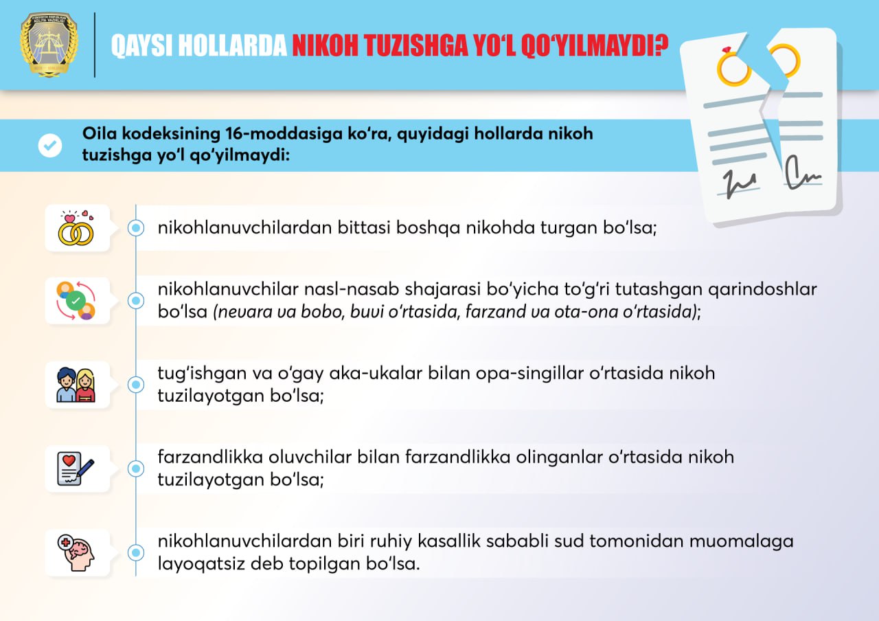 Nikoh tuzilishiga yo'l qo'yilmaydigan holatlar